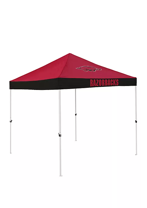 This large Arkansas Razorbacks 9-foot x 9-foot Economy tent from Logo has a durable water resistant canopy top to protect you in case it rains on game day. Your team logo is featured on two sides and the team nickname is printed on a secondary color valance. It has a 6-foot height clearance and stands 9-foot at the tallest point. The canopy retracts to 4-foot for easy portability and storage and includes ground stakes for extra stability. Lightweight but still sturdy, the Economy canopy can withstand just as much game day enthusiasm as any other canopy. Set yourself apart from the competition with this tent! Also great for the beach, camping or a party!