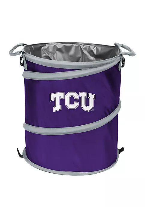 The TCU Horned Frogs Collapsible 3-in-1 Cooler Hamper Wastebasket from Logo is a versatile essential for any tailgater. It serves as a collapsible trashcan to turn unsightly game day trash into team spirited decoration, a cooler with a PVC leak proof lining so you and your fellow tailgaters can easily grab a chilled beverage, or even a laundry hamper, which makes it a perfect gift for college students living in a dorm. With a screenprinted logo featured on the front, anyone will enjoy displaying their team spirit in multiple styles with this Collapsible 3-in-1 Cooler Hamper Wastebasket.