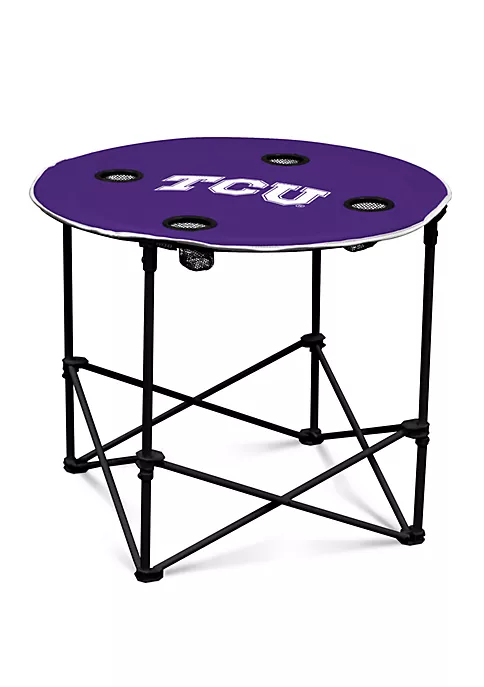 The TCU Horned Frogs portable round table from Logo is just what the ultimate fan needs for their next tailgate party. Its height matches Logo chairs so you can enjoy your favorite tailgating foods comfortably. It folds up easily for storage and transportation. Featuring a team logo and four cup holders, fans can enjoy the team spirit and their favorite snacks together with the convenient round table.