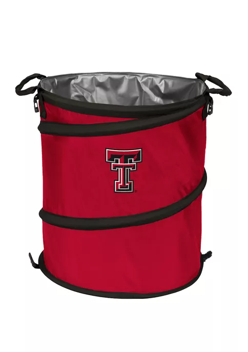 The NCAA Texas Tech Red Raiders Collapsible 3-in-1 Cooler Hamper Wastebasket from Logo is a versatile essential for any tailgater. It serves as a collapsible trashcan to turn unsightly game day trash into team spirited decoration, a cooler with a PVC leak proof lining so you and your fellow tailgaters can easily grab a chilled beverage, or even a laundry hamper, which makes it a perfect gift for college students living in a dorm. With a screen-printed logo featured on the front, anyone will enjoy displaying their team spirit in multiple styles with this Collapsible 3-in-1 Cooler Hamper Wastebasket.